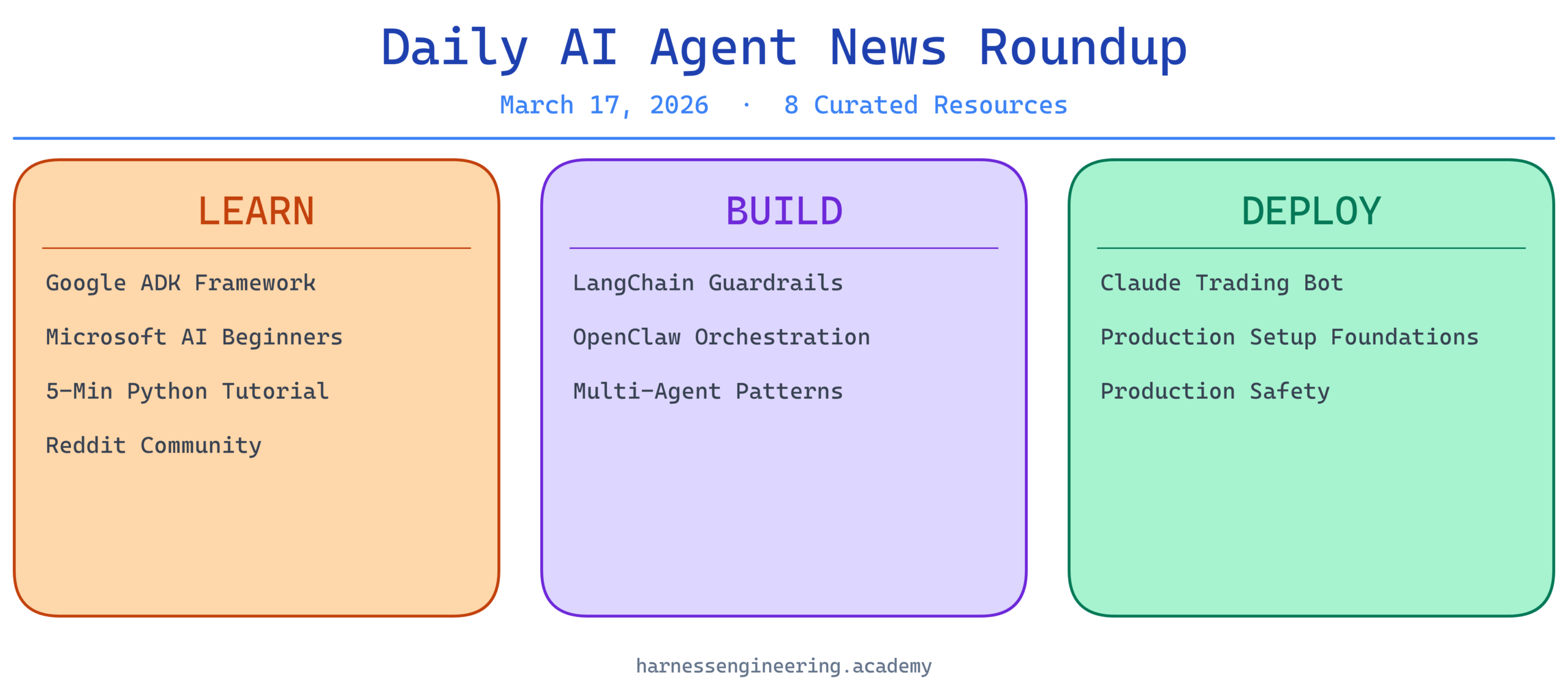 The AI agent ecosystem continues to mature at a rapid pace, with major tech companies and independent developers releasing increasingly accessible tools and educational resources. March 15, 2026 brings a flood of practical content designed to democratize AI agent development—from foundational frameworks to specialized applications in trading and multi-agent orchestration. Whether you’re just starting your … Read more